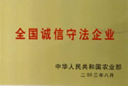 公司發(fā)展四十一年以來(lái),先后榮獲了國(guó)家、省、市多項(xiàng)榮譽(yù),2001年被國(guó)家農(nóng)業(yè)部確認(rèn)為“全國(guó)鄉(xiāng)鎮(zhèn)企業(yè)創(chuàng)名牌重點(diǎn)企業(yè)”,2003年被國(guó)家農(nóng)業(yè)部確認(rèn)為“全國(guó)誠(chéng)信守法鄉(xiāng)鎮(zhèn)企業(yè)”,榮獲農(nóng)業(yè)部“全國(guó)質(zhì)量管理達(dá)標(biāo)”證書(shū),先后被省委、省政府授予“省明星企業(yè)” 、“省質(zhì)量效益型先進(jìn)企業(yè)”,多年被金融部門(mén)評(píng)為“AAA級(jí)信用優(yōu)良企業(yè)”, 2006年被國(guó)家農(nóng)業(yè)部授予“中國(guó)最具挑戰(zhàn)潛力民營(yíng)企業(yè)”,被市委、市